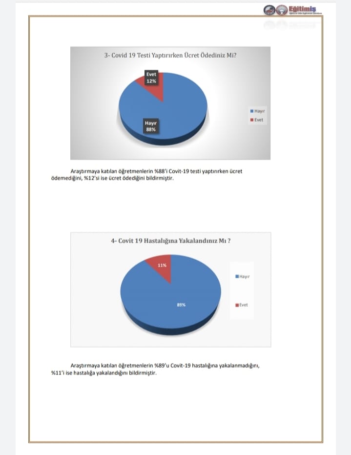 • Bursa’da her 100 eğitim çalışanından 12’si Covit-19 testi yaptırırken ücret ödediğini söylemiştir.