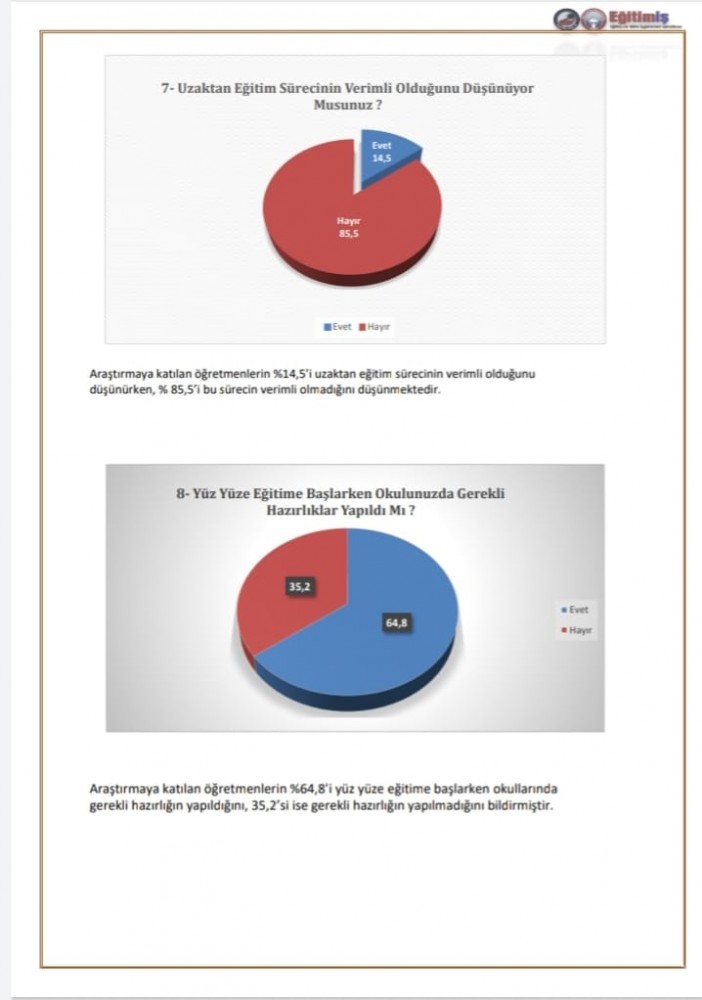 • Bursa’da her 100 eğitim çalışanından 85.5’i uzaktan eğitim sürecinin verimli olmadığını ifade etmiştir.