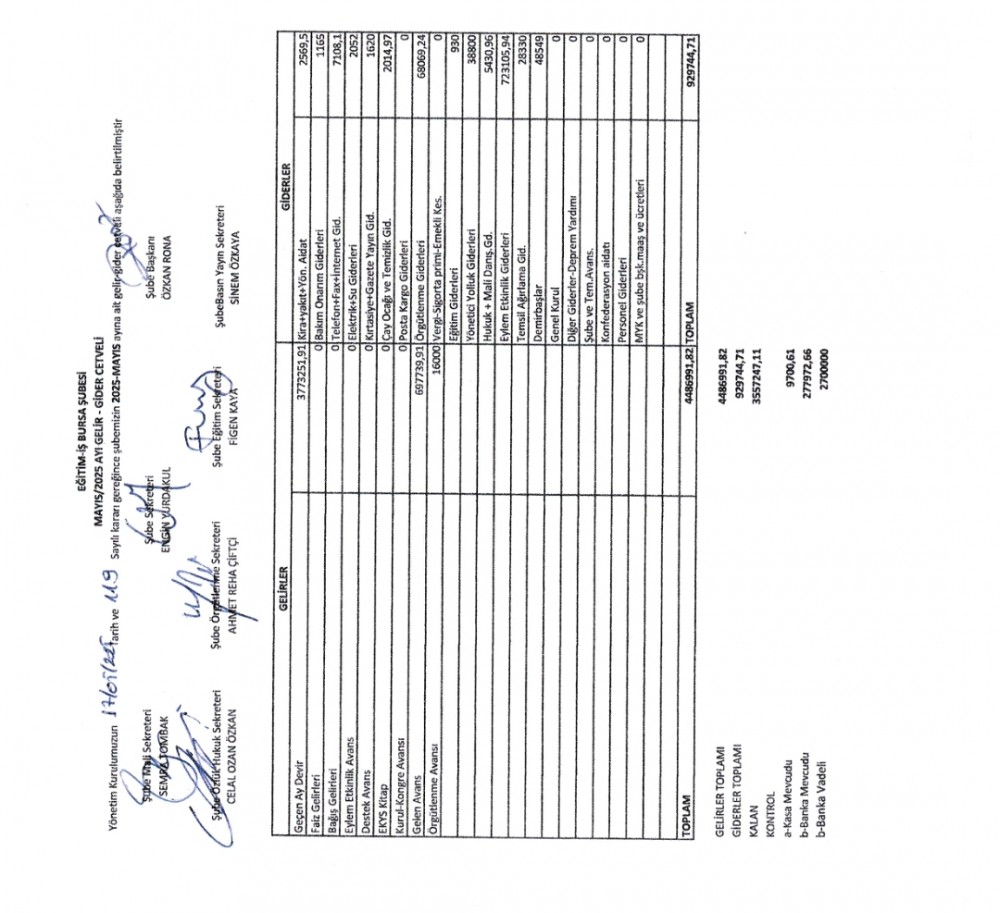 MAYIS 2017 GELİR-GİDER DÖKÜMÜ