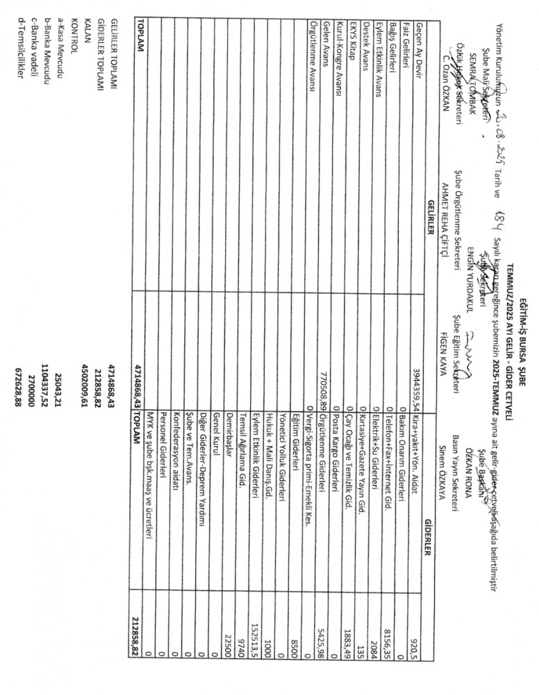 TEMMUZ 2017 GELİR-GİDER DÖKÜMÜ…TIKLAYINIZ